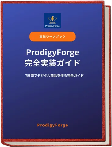 1年後、あなたはどんな自分になっていたいですか? 今日、行動を起こした人だけが 未来を変えられます。 ProdigyForgeは、その第一歩を 確実に踏み出すためのガイドです。 7日後には、あなたのデジタル商品が完成し、 ビジネスがスタートしています。 迷っている時間はありません。 今すぐ始めましょう。